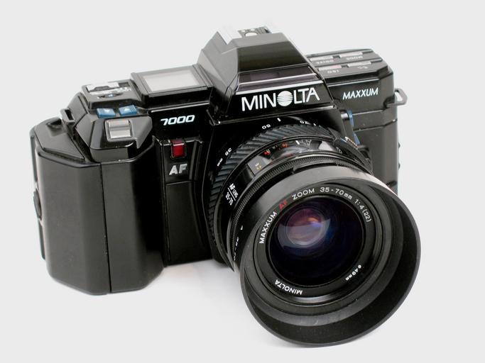 MAKE A MEME View Large Image Minolta Maxxum 7000 with 35-70mm zoom lens.jpg en The Minolta Maxxum 7000 was an autofocusing 35mm SLR camera introduced in early 1985 It also had a power winder that advanced film automatically after each shot The camera with a 55mm lens ...