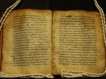 Keywords: Minuscule 2445 (GA) 025.jpg en two pages of the codex with text of Mark 15 6-27 Minuscule 2445 Gregory-Aland Author century 12 Minuscule 2445 GA PD-Art