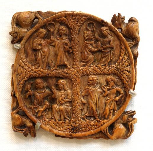 | Keywords: Mirror Back with Four Pairs of Lovers, France, 14th century, elephant ivory, lent by Metropolitan Museum of Art - Chazen Museum of Art - DSC01924.JPG en Exhibit in the Chazen Museum of Art University of Wisconsin-Madison Madison Wisconsin USA This artwork is old enough so that it is in the public domain Photography was permitted in the museum without restriction 2013-07-21 13 12 12 own Daderot cc-zero Medieval ivories in the Metropolitan Museum of Art 14th-century carved ivory mirror cases Uploaded with UploadWizard French carved ivory mirror cases |