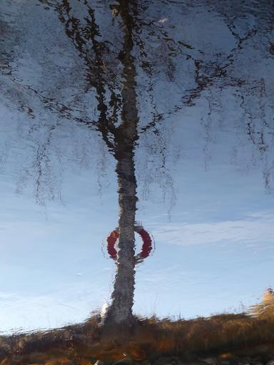 Keywords: mirror image water birch tree buoy reflection spegelsjö nature still lake mirroring