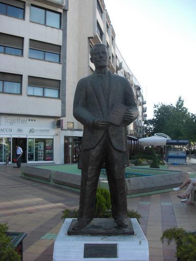 Keywords: Misirkov-pellasquare.JPG en Statue of Krste P Misirkov on Pella Square Skopje Macedonia own Yemc see cam info below Monuments in Skopje Pela Square