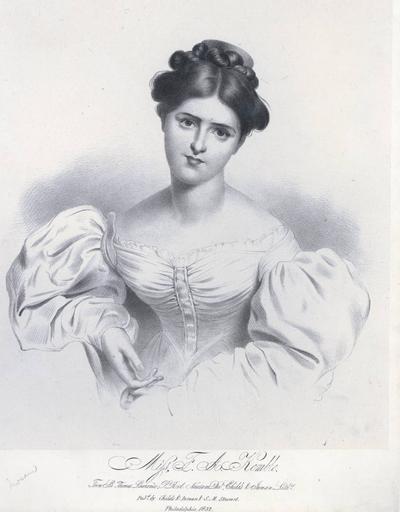 | Keywords: Miss F. A. Kemble, 1832.jpg en 30x23 cm lithograph On stone by Newsam Albert 1809-1864 American From painting by Lawrence Sir Thomas 1769-1830 English Frances Anne Fanny Kemble 1809-1893 British actress and member of the famous Kemble theatrical family Daughter of actor Charles Kemble niece of actress Sarah Siddons and actor John Philip Kemble and sister of opera singer Adelaide Kemble Made her debut in 1829 as Juliet Known for her roles as Portia Beatrice and Lady Teazle Most famous for her role as Julia in The Hunchback a part that playwright Sheridan Knowles wrote specifically for her Later became an activist against slavery Also wrote several plays poems travel books and memoirs of her life and career Was a good friend of author Henry James and his story Washington Square is based on a story Fanny told him about one of her brothers Frances Anne Fanny Kemble Butler 1809-1893 British actress and member of the famous Kemble theatrical family Daughter of actor Charles Kemble niece of actress Sarah Siddons and actor John Philip Kemble and sister of opera singer Adelaide Kemble Made her debut in 1829 as Juliet Known for her roles as Portia Beatrice and Lady Teazle Most famous for her role as Julia in The Hunchback a part that playwright Sheridan Knowles wrote specifically for her Later became an activist against slavery Also wrote several plays poems travel books and memoirs of her life and career Was a good friend of author Henry James and his story Washington Square is based on a story Fanny told him about one of her brothers 1832 http //content libraries wsu edu/cdm/ref/collection/rcbutler/id/806 Childs Inman S M Stewart other versions PD-old-100-1923 Frances Anne Kemble Albert Newsam |