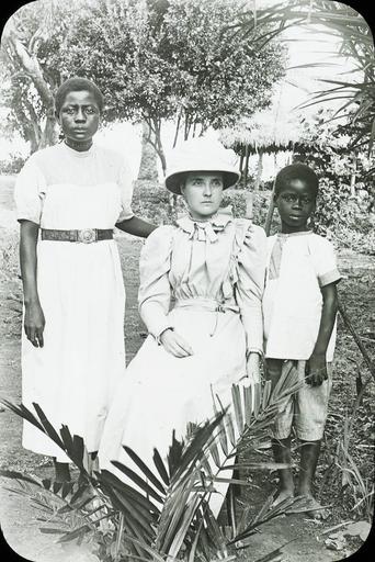 Keywords: Miss M Cork and companions, Congo, ca. 1900-1915 (IMP-CSCNWW33-OS9-2).jpg en <br> Miss M Cork and companions Congo ca 1900-1915 Black and white lantern slide featuring Miss M Cork a young Congolese boy and an older woman who may be his mother Miss Cork sits at the centre of the image on a chair She wears a smart hat and an Edwardian style floor length dress with puff sleeves and narrow cuffs The boy and woman stand to either side of her The boy wears a smart shirt and short whilst the Congolese woman wears a light European style dress with a clasp belt Miss Cork was based at Bonginda recorded in 1899 and later at Lulonga and survived the wreck of the steamer Jebba when she returned to the United Kingdom on furlough in 1907 This slide comes from a collection generated by missionaries working for the Congo Balolo Mission a mission under the supervision of the East London Training Institute for Home and Foreign Missions that developed into the interdenominational evangelical mission Regions Beyond Missionary Union Photographer Unknown Filename IMP-CSCNWW33-OS9-2 tif Coverage date 1900/1915 Subject unesco Women; Missionary work Part of collection International Mission Photography Archive ca 1860-ca 1960 Part of subcollection Photographs from the Centre for the Study of World Christianity University of Edinburgh U K ca 1900-ca 1940s Subject corporate name Congo Balolo Mission Repository name Centre for the Study of World Christianity Archival file Volume2/IMP-CSCNWW33-OS9-2 tif Repository address The University of Edinburgh School of Divinity New College Mound Place Edinburgh EH1 2LX United Kingdom Geographic subject country Congo Format aacr2 lantern slides 8 2 x 8 2cm Geographic subject continent Africa Rights Contact the repository for details Part of series Regions Beyond Missionary Union Slides of Congo Missionaries CSCNWW33-OS9 Repository email divinity-CSWC ed ac uk Date created 1900/1915 Publisher of the digital version University of Southern California Libraries Subject aat genre group portriaits Format aat lantern slides; photographs Access conditions http //www ed ac uk/schools-departments/divinity/research/centres/world-christianity/collections-resources File CSCNWW33/OS9/2 Subject lcsh Women missionaries 1900/1915 date created author http //digitallibrary usc edu/cdm/ref/collection/p15799coll123/id/78011 PD-old-70-1923 Women of the Democratic Republic of the Congo Missionaries from the United Kingdom Congo-Balolo Congo-Balolo Mission Missionaries Magic lantern images Images from USC Digital Library uploaded by Fæ International Mission Photography Archive ca 1860-ca 1960 |