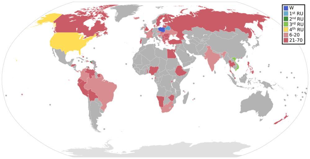 | Keywords: Miss Supranational 2011 Map.svg en Map showing the contestants and winners of the Miss Supranational beauty contest 2011 BlankMap-World6 svg Derfel73; Canuckguy et al 2011-10-30 SVG maps of the world Maps of beauty pageant contestant countries |