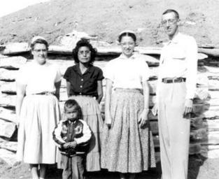 | Keywords: mennonite board of missions mennoniteboardofmissions arizona black mountain mission blackmountainmission navaho stanley weaver stanleyweaver arlie weaver arlieweaver lois kauffman loiskauffman lita rose tsosie litarosetsosie blackandwhite monochrome black and white Caption:  Black Mountain Mission staff: Stanley & Arlie Weaver, Lita Rose Tsosie, Lois Kauffman.   Chinle, Arizona.  Citation:  Mennonite Board of Missions Photograph Collection.  Mission to Arizona,  1950-1970. IV-10-7.2  Box 1 Folder 47, Photo #12.   Mennonite Church USA Archives - Goshen. Goshen, Indiana. Caption:  Black Mountain Mission staff: Stanley & Arlie Weaver, Lita Rose Tsosie, Lois Kauffman.   Chinle, Arizona.  Citation:  Mennonite Board of Missions Photograph Collection.  Mission to Arizona,  1950-1970. IV-10-7.2  Box 1 Folder 47, Photo #12.   Mennonite Church USA Archives - Goshen. Goshen, Indiana.  |