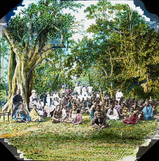 | Keywords: Missionaries with villagers, Congo, ca. 1900-1915 (IMP-CSCNWW33-OS12-18).jpg Congo Free State or post-1908 Belgian Congo present day Democratic Republic of the Congo Most of the Congolese sit on the ground - those sitting wear traditional dress A few Congolese men wear Western suits and sit or stand to the side of the main group or stand at the back of the image behind a small group of missionaries They may be native evangelists or Christain converts Two European female missionaries sit to the side of the group on chairs next to a native evangelist and two male missionaries sit to the backk of a group behind a clothed table This slide comes from a collection generated by missionaries working for the Congo-Balolo Mission a mission begun in 1889 under the supervision of the East London Training Institute for Home and Foreign Missions that developed into the interdenominational evangelical mission Regions Beyond Missionary Union after 1900 Photographer Unknown Filename IMP-CSCNWW33-OS12-18 tif Coverage date 1900/1915 Subject unesco Missionary work Part of collection International Mission Photography Archive ca 1860-ca 1960 Part of subcollection Photographs from the Centre for the Study of World Christianity University of Edinburgh U K ca 1900-ca 1940s Subject corporate name Congo-Balolo Mission Repository name Centre for the Study of World Christianity Archival file Volume2/IMP-CSCNWW33-OS12-18 tif Repository address The University of Edinburgh School of Divinity New College Mound Place Edinburgh EH1 2LX United Kingdom Geographic subject country Congo Format aacr2 lantern slides 8 2 x 8 2cm Geographic subject continent Africa Rights Contact the repository for details Part of series Regions Beyond Missionary Union Congo Transport and Tinted Slides CSCNWW33/OS12 Repository email divinity-CSWC ed ac uk Date created 1900/1915 Publisher of the digital version University of Southern California Libraries Subject aat genre group portraits Format aat lantern slides; photographs Access conditions http //www ed ac uk/schools-departments/divinity/research/centres/world-christianity/collections-resources Geographic subject populated places File CSCNWW33/OS12/18 Subject lcsh Crowds; Missionaries 1900/1915 date created author http //digitallibrary usc edu/cdm/ref/collection/p15799coll123/id/78131 PD-old-70-1923 People of the Democratic Republic of the Congo Congo-Balolo Mission group History of the Democratic Republic of the Congo Congo Free State Belgian Congo Magic lantern images Images from USC Digital Library uploaded by Fæ International Mission Photography Archive ca 1860-ca 1960 Group photographs |