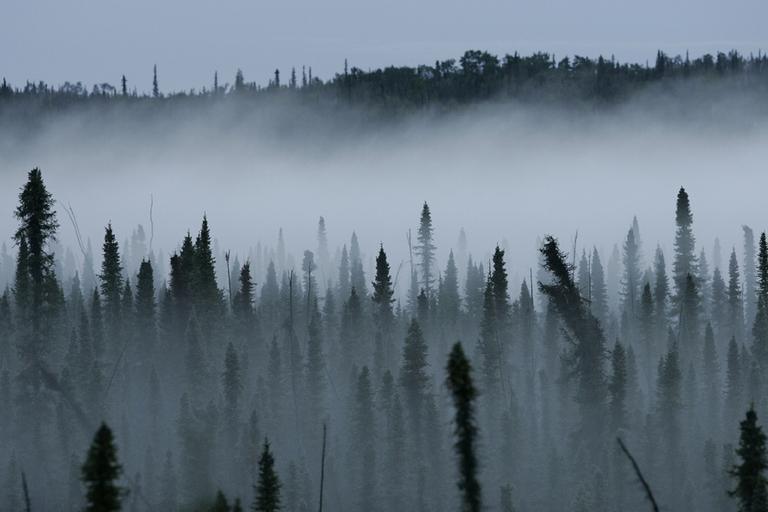 Keywords: misty forest black spruce trees foggy landscape fog nature scenic mysterious