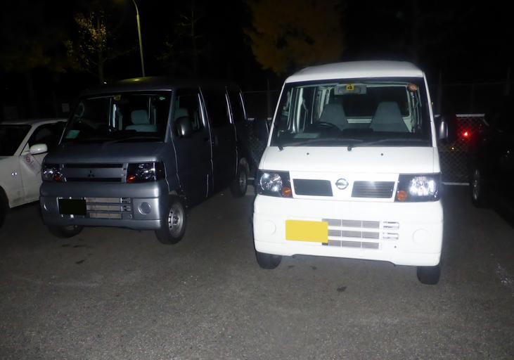 Keywords: Mitsubishi MINICAB (U61V) & Nissan CLIPPER VAN (U71V) at night front.JPG ja U61V型三菱・ミニキャブとU71V型日産・クリッパーバンを れぞれ 間にフロントから撮影 2013-12-04 21 04 10 own Tokumeigakarinoaoshima cc-zero Uploaded with UploadWizard Mitsubishi Minicab 6th generation Nissan Clipper |