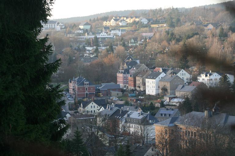 | Keywords: Mitteldorf, Fuchswinkel und Fuchsstein.JPG Schönheide im Erzgebirge Vom Denkmal am Knock geht der Blick über Mitteldorf und Fuchswinkel zum Fuchsstein Rechts das imposante Gebäude der Geschwister-Scholl-Schule die von 1896 bis 1998 gebaut wurde Die roten Ziegelbauten links sind vorn die Post von 1891 und dahinter das Hotel zur Post etwa aus der gleichen Zeit Mehrfamilienhäuser aus der Gründerzeit und später zeigen die stadtähnliche Bebauung aus der Zeit der Verstädterung Neuere Bauten aus den 1990er und 2000er Jahren finden sich im oberen Bildbereich am Fuchsstein own Klaaschwotzer 2009-09-21 Cc-zero Check categories 2013 October 28 Schönheide |