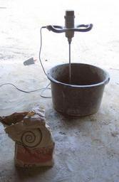 Keywords: Mixing concrete.jpg en A bag of Portland cement being mixed with sand and water 1 part cement is used for 3 parts sand; water is added until smooth but not fluid Own KVDP 2008-06-24 Cement Construction equipment