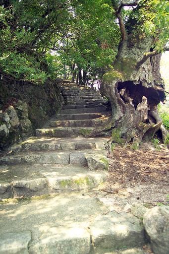 Keywords: MiyajimaStairs7449.jpg Stairs leading from the exit of Itsukushima Shrine toward the Tah t in Miyajima Hiroshima Prefecture Japan I took the photo Fg2 Natural stone stairs Miyajima