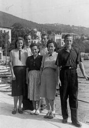 Keywords: Mladi predilniški pari na letovanju ob morju 1936.jpg Mladi predilniški pari na letovanju ob morju 1936 7 12950 author watermark PD-Slovenia 1936 portrait photographs People of Slovenia in 1936 20th-century group portrait photographs Group photographs in Slovenia Group portraits with 6 persons Historical images of Opatija |