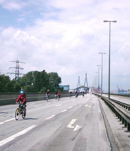 | Keywords: MoA Fahrrad-Sternfahrt Hamburg 2007 033.jpg Fahrradsternfahrt in Hamburg am 17 06 07 Auf der Köhlbrandbrücke Blickrichtung Waltershof own Own photo 2007-06-17 GeorgHH Own work all rights released Public domain Köhlbrandbrücke Cycling in Hamburg |