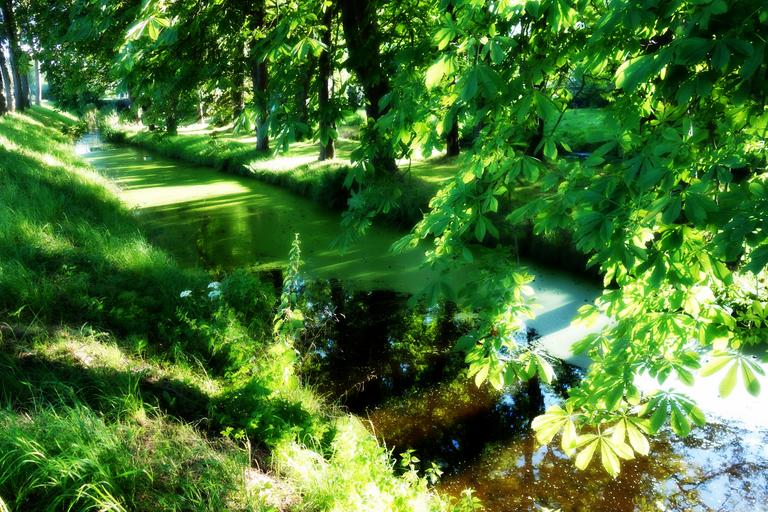 Keywords: moat water duckweed landscape scenic foliage sunshine bright