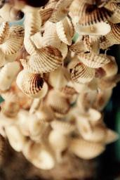Keywords: mobile mussels sound harmony glockenspiel windspiel symbol composition shimmer silver mother of pearl gloss lines curves shine sea