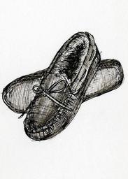 Keywords: Moccasins.jpg of the concept in this drawing is Heelless footwear made entirely of soft leather as deerskin with the sole brought up to form part or all of the upper portion covering the foot and with a back seam; worn originally by indigenous peoples of North America Also shoes of similar construction with hard sole and heel attached made of soft or hard leather or leatherlike material AAT exhibition history Institution ModeMuseum Provincie Antwerpen Ink on paper object history object type Cc-zero This drawing is labelled CC0 You are not obliged to but we do appreciate it when you mention the artist Europeana Fashion and link back to the original file on Wikimedia Commons For more information please contact communication europeanafashion eu place of creation Drawing made by David Ring commissioned by Europeana Fashion scanned by team of MoMu “ Fashion Museum Province of Antwerp moccasins Uploaded with GWToolset moccasins http //openfashion momu be/cc/imageproxy aspx server localhost port 5986 filename image/GWToolset/thesaurusID_10257_moccasins jpg Europeana_Fashion_-_MoMu_-_thesaurus_drawings Moccasins modern footwear Paintings by David Ring with fur Fur fashion in 2014 Moccasins in art |