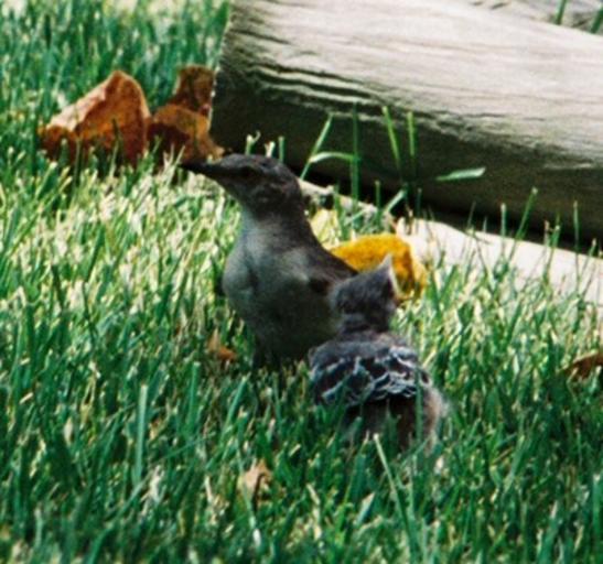 Keywords: Mockingbird Feeding Chick001.jpg Northern Mockingbird Feeding Her Chick Own 2007-07-12 Lsi john Mimus polyglottos juvenile Birds feeding young