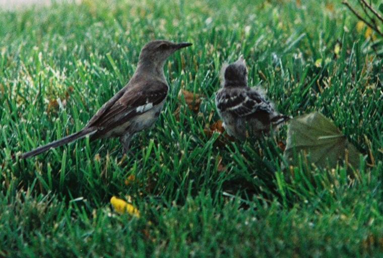 Keywords: Mockingbird Feeding Chick023.jpg Northern Mockingbird Feeding Her Chick Own 2007-07-12 Lsi john Mimus polyglottos juvenile Birds feeding young