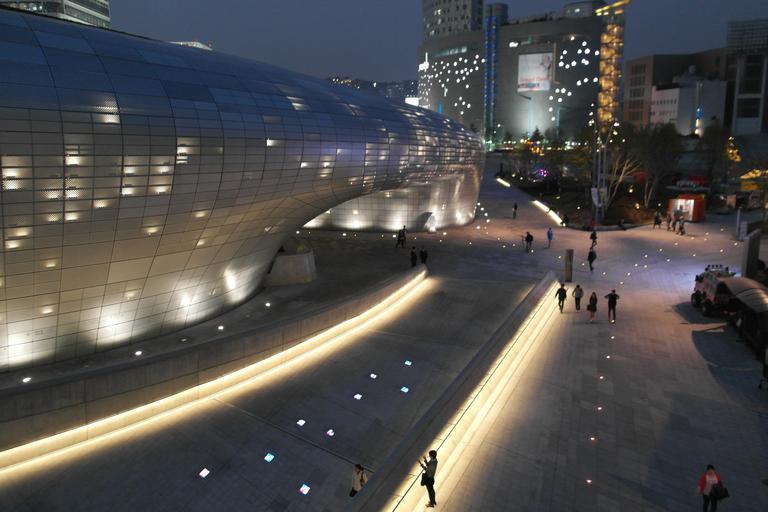 Keywords: modern structure night view night in the evening city seoul dongdaemun history and culture park dongdaemun design plaza