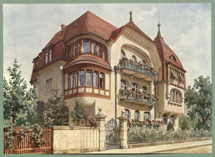 | Keywords: Moderne Villen in Meisteraquarellen Serie II Tafel 041 Dresden-Blasewitz Mietshaus Wägnerstraße 18.JPG Mietshaus Wägnerstraße 18 früher Schulstraße 3 in Dresden-Blasewitz Architekt Martin Pietzsch Tafel 41 aus Oscar Grüner Moderne Villen in Meisteraquarellen Serie II 64 Tafeln Verlag Friedrich Wolfrum Co Wien und Leipzig ca 1905 Hochschulbibliothek Georg-Simon-Ohm-Hochschule Nürnberg http //bvbm1 bib-bvb de Oscar Grüner / Verlag Friedrich Wolfrum Co ca 1905 Apartment buildings in Dresden Art Nouveau buildings in Dresden Wägnerstraße Dresden Cultural heritage monuments in Dresden-Blasewitz Dresden in the 1900s Watercolor paintings of houses Watercolor paintings in Germany 1900s watercolor paintings Moderne Villen in Meisteraquarellen Serie II PD-old |
