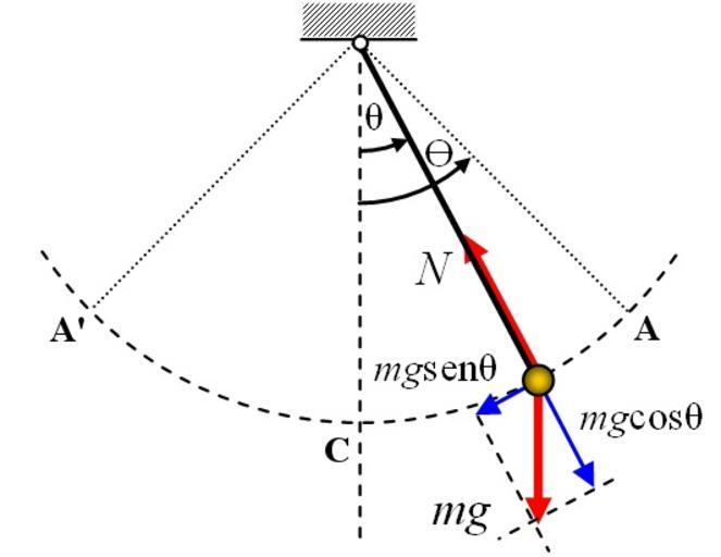 Keywords: Moglfm1309 pendulosimple.jpg es Pendulo simple - Esquema de fuerzas own Algarabia 2009 Diagrams of pendulums
