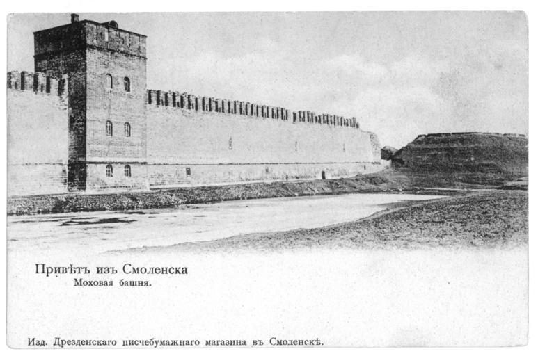 Keywords: Mohovaya tower 2.jpg en Mohovaya Tower now - the Victory Square the Smolensk fortress wall On the right is seen Shein bastion ru оховая башня ныне - на площади Победы Смоленской к епостной стены Сп ава виден Шеинов бастион О игинальная отк ытка Изд Д езденского писчебумажного магазина в Смоленске before 1917 года PD-RusEmpire 20th-century postcards Postcards of Smolensk Mohovaya Tower