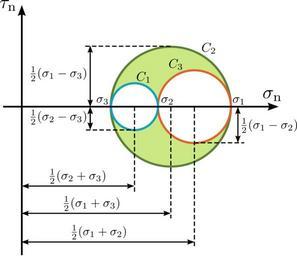 Keywords: Mohr Circle.svg en Mohr's circle for a general three-dimensional stress state The three principal stress characterizing the state of stress are identified on the abscissa as σ<sub>1</sub> σ<sub>2</sub> and σ<sub>3</sub> fr Cercles de Mohr dans le cas général d'un état de contraintes triaxial Les contraintes principales sont identifiées par les abscisses σ<sub>1</sub> σ<sub>2</sub> and σ<sub>3</sub> pl Koło Mohra dla przestrzennego stanu naprężenia Odkształcenia główne są oznaczone jako σ<sub>1</sub> σ<sub>2</sub> i σ<sub>3<sub/> Own Sanpaz 2009-03-19 Cercle mohr etat contraintes triaxiales notation 123 svg Cercle mohr etat contraintes triaxiales notation xyz svg created with Inkscape Mohr's circle SVG geometry |