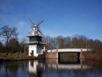 | Keywords: Molentje.jpg Windmill at East entrance of Groenendaal park in Heemstede The park is situated at the site of the former home of John Hope whose estate Bosbeek was the first example of a garden in the 'English Style' in the 18th century in the Netherlands He installed the first steam engine for garden use at the site of this windmill in 1781 which had an opposite purpose than most Dutch windmills He wanted to pump water <i>into</i> his estate to grow the unusual plants and trees he had cultivated in the dry sand Dutch windmills are normally used for pumping water <i>out</i> of places In circa 1850 the steam engine was broken down and the copper kettle sold for scrap Photo date January 2007 Source I took the picture from the other side of the Merlenvaart canal Groenendaalse Molen Heemstede Bosbeek Heemstede |
