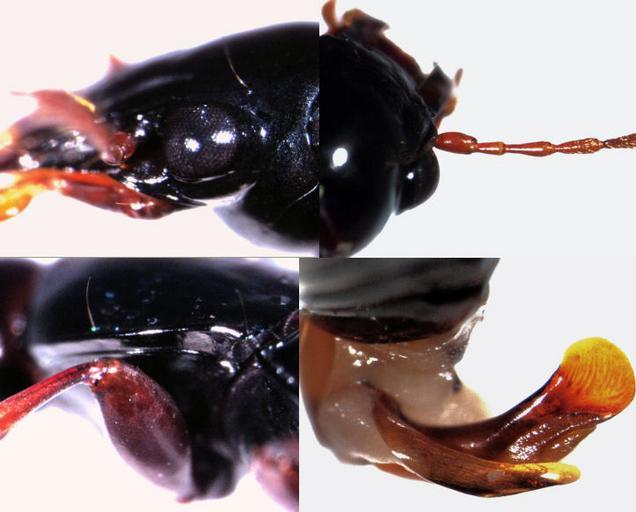 | Keywords: Molopsida polita male2.jpg en adult male Molopsida polita top left head to show single supraorbital seta; top right antenna to show glabrous 3rd segment; bottom left pronotum to show 2 marginal setae; bottom right aedeagus Mount Maungatautari South cell inside cell transect 1 pitfall trap D Waikato region New Zealand 21 Jan-24 Feb 2010 C H Watts self-photographed S E Thorpe 2010-06-26 Moriomorphina Coleoptera mouthparts Coleoptera aedeagus Coleoptera antennae Coleoptera pronotum Coleoptera of New Zealand Coleoptera specimens Maungatautari |