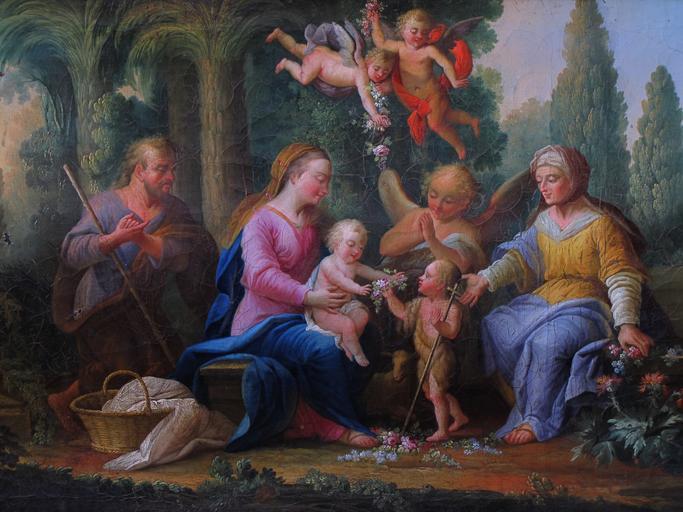 MAKE A MEME View Large Image Molsheim Jésuites255.JPG Alsace Bas-Rhin Molsheim Eglise des Jésuites Devant d'autel Peinture Sainte-Famille XVIIIe own 2013 Ralph Hammann cc-by-sa-3 0 Artwork / Œuvre d'art / Kunstwerk Artist Sainte Famille assise dans un paysage ...