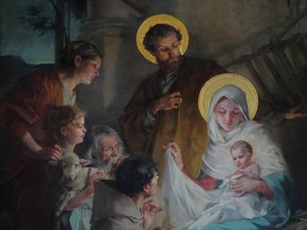 | Keywords: Mommenheim StMaurice 23.JPG Alsace Bas-Rhin Mommenheim Église Saint-Maurice Maître-autel XVIIIe Tableau Adoration des bergers M Feuerstein 1891 own 2013 Ralph Hammann cc-by-sa-3 0 Artwork / Œuvre d'art / Kunstwerk Artwork Creator Martin von Feuerstein 1891 oil canvas cm Eglise Saint-Maurice Mommenheim Maître-autel PM67000547 IM67007164 object history Tableaux d'origine des contretables disparus ; le tableau du maître-autel devait représenter saint Maurice cartouche avec initiales S M ; ceux des couronnements par G Huss datent de 1877 ceux des contretables par Martin Feuerstein de 1891 à 1893 ; les autels les retables et le tabernacle sont du 18e siècle other versions Ralph Hammann sur le tableau du Dieu le Père signature nom des donateurs date 1877 ; signature et dates 1893 sur l'Annonciation 1892 sur le saint François 1891 sur l'Adoration des bergers PD-old accession number Photographs of Mommenheim by Ralph Hammann Taken with Canon PowerShot SX20 IS Choir altar of Église Saint-Maurice de Mommenheim Objets monuments historiques in Bas-Rhin church paintings 19th-century church paintings in Alsace Adoration by the shepherds in paintings 19th-century paintings of adoration by the shepherds Martin von Feuerstein 1891 works in Alsace 1891 oil on canvas paintings in France Details of 19th-century paintings |