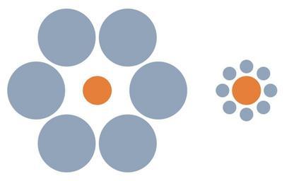 MAKE A MEME View Large Image Mond-vergleich.svg Mondtäuschung Prinzip der Vergleichsobjekte Die beiden orangen Kreise in der Mitte sind gleich groß Optical illusion The two orange circles are the same size Ilusión óptica Los dos círculos anaranjados son del mismo ...
