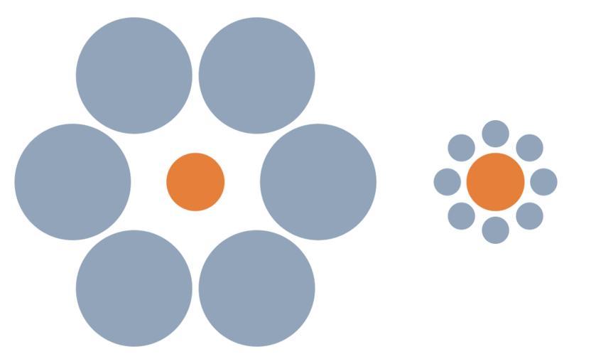 Keywords: Mond-vergleich.svg Mondtäuschung Prinzip der Vergleichsobjekte Die beiden orangen Kreise in der Mitte sind gleich groß Optical illusion The two orange circles are the same size Ilusión óptica Los dos círculos anaranjados son del mismo tamaño Illusion d'optique Les deux cercles oranges sont de la même taille 2006-06-01 own assumed Phrood~commonswiki Ebbinghaus illusion Moon illusions