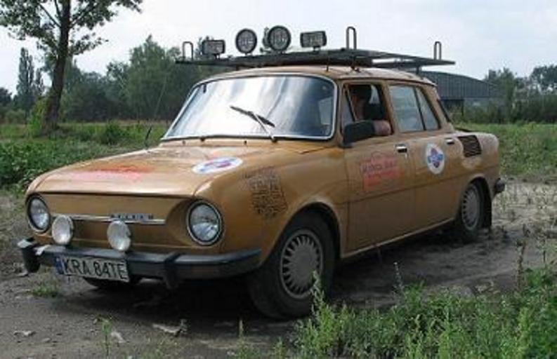 Keywords: Mongol Rally Skoda.jpg Skoda S110 used by Skoda Power Turbo Racing Team in the 2006 Mongol Rally Captured by Rich Tatham in Warsaw Poland using a Canon Powershot A610 2007-02-07 own assumed Santahul~commonswiki Škoda 110 in competition Mongol Rally |