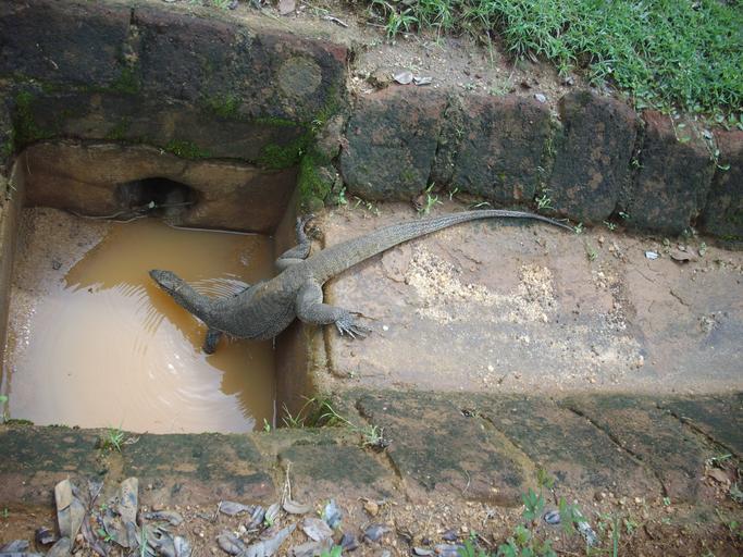Keywords: Monitor Lizard at Sigiriya National Park in Sri Lanka..jpg en A giant monitor lizard sneaking into the water drain of Sigiriya National Park in Sri lanka own Rudolph A furtado Wednesday 24-10-2012 Unidentified Varanidae Animals of Sigiriya Cc-zero |