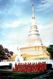 | Keywords: Monk stands for take a photograph at the pagoda.jpg Buddhist monk stands for take a photograph at the pagoda Nan Thailand 1998 Own work คณะสาม ณรวัดคุ้งตะ ภา อำ ภอ มืองอุตรดิตถ์ กำลัง ข้าแถวถ่ายรูุปบริ วณหน้าองค์พระบรมธาตุแช่แห้ง จังหวัดน่าน ภาค หนือของประ ทศไทย own 1998 Photo by Tevaprapas Makklay low quality Wat Phra That Chae Haeng Nan Buddhist monks of Thailand | ||||