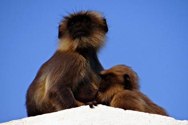 Keywords: monkey mom suckling baby langur hanuman langur semnopithecus entellus gray langur animal mammal sitting female dharwad india