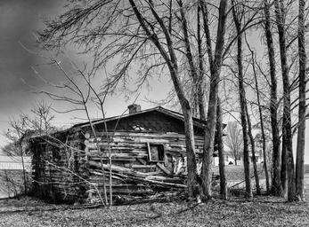 Keywords: monochrome black and white landscape rural country scenic shack barn sky trees building outdoor bw