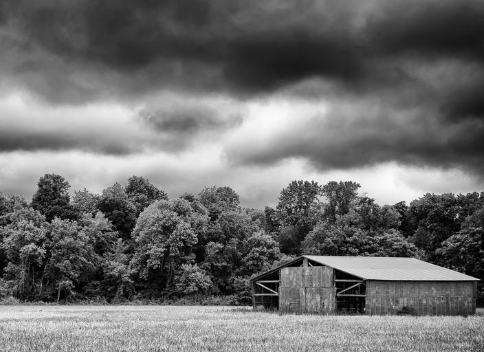 Keywords: monochrome black and white landscape sky rural country barn architecture america scenery