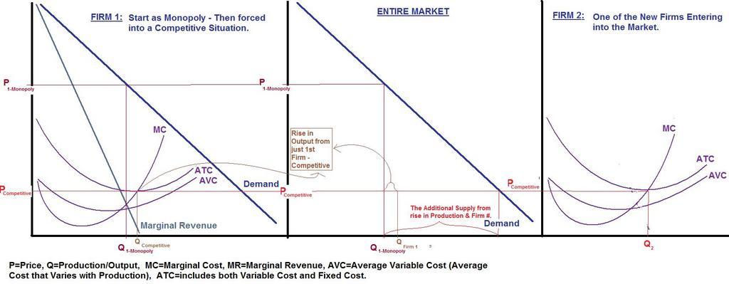 | Keywords: MonopolyToCompetitive-Transformation-Wiki.jpg en If a Firm may have a Monopoly no Competition in an industry it can control the Supply for the entire Industry in order to ensure a high Price and a Maximum Monopoly Profit However when Competition in the form of other Firms enters into the Market the Competition for Customers forces all firms to both lower the Price they ask for the Product They don't produce beyond the point the Market Price pays for the Cost of the last unit they produce own Mgmwki This is considered General Knowledge amongst all Economists - In Economics Classes in College You can Find this in various forms in any Micro Economics Text Book Journal Article From Various Micro Economics Classes - General Knowledge in Economics show in every beginning level Micro Class You may Find various representations of the same thing in various Micro Economics Books This includes both Graduate Level and Undergraduate Level books as well as some very popular books like the 'Economics for Dummies' book s See Example in Bradley R chiller Essentials of Economics New York McGraw-Hill Inc 1991 Micro Economics Uncategorized 2015 January 10 |
