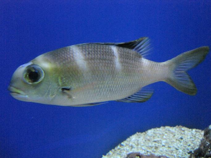 Keywords: Monotaxis-grandoculis.JPG en Monotaxis grandoculis also known as bigeye emperor humpnose big-eye bream photographed at Waikiki Aquarium Honolulu Hawaii own Joel Bradshaw 2011-02-13 Cc-zero Monotaxis grandoculis Waikiki Aquarium