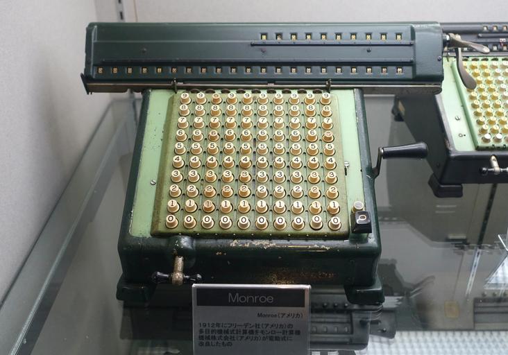 | Keywords: Monroe calculator - Ridai Museum of Modern Science, Tokyo - DSC07573.JPG en Exhibit in the Ridai Museum of Modern Science Tokyo University of Science Kagurazaka campus - 1-3 Kagurazaka Shinjuku-ku Tokyo 2015-02-20 02 09 12 own Daderot other versions cc-zero Mechanical calculators in the Ridai Museum of Modern Science Monroe calculators | ||||