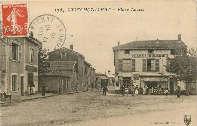 | Keywords: Montchat. Place Louise 3.jpg  Artwork LangSwitch End of the square of a village at the beginning of the century This place is frequented by both pedestrians and is lined ciclyste On right there is a two-story house On the ground floor there is a front door commerce with an outside stand There is an sign where we can read Warehouses of food In his corner is lacated a lantern A high car towed by a horse moves away along a street with houses The left is closed by one or two-storey houses We can see with difficulty a street between two houses Extrémité de la place d ™un bourg au début du siècle Cette place n ™est fréquentée que par deux piétons et un cycliste Elle est bordée à droite par une maison à deux étages Au rez-de-chaussée se trouve un commerce avec un étal extérieur Elle porte en façade une enseigne où est écrit en capitales Aux docks de l'alimentation A son coin se touve une lanterne Une voiture de haute taille hippomobile s ™Ã©loigne empruntant une rue bordée de maisons La gauche est fermée par des maisons à un voir deux étages On devine une rue entre deux maisons before 1910-08-05 LangSwitch poscard carte postale place of discovery object history exhibition history credit line LangSwitch top and middle 1754 - Montchat Rhône Place Louise To the right on a 10 cent stamp with La Semeuse postmarked which is read backwards Montchat remainder deleted en haut et au milieu 1754 “ Montchat Rhône Place Louise <br> LangSwitch On left on a 10 cent stamp with La Semeuse postmarked which is read backwards LYON MONCHAT - En haut à gauche sur un timbre de 10 centimes avec La Semeuse sur fond carmin un cachet postal où l'on devine 1 en périphérie du cercle ; en bas et à gauche LYON MONCHAT - 2 Le reste est illisible <br> LangSwitch A second stamp with 1 on the circle ; LYON MONCHAT RHONE - 2 In the center ; a first line b second line 17 - 05 c third line 15 En haut à gauche un second cachet porte les insciptions 1 en périphérie du cercle ; LYON MONCHAT RHONE - 2 Au centre ; a première ligne illisible b seconde ligne 17 - 05 c troisième ligne 15 <br> LangSwitch Riht and down S imon Farges éditeur Lyon En bas à droite S imon Farges éditeur Lyon LangSwitch There is a postcard used 1910-08-05 Il exite une carte postale utisée le 05 août 1910 accession number place of creation LangSwitch The operator faces the South He stands against the constructions between Julie and Bonnand streets He photographs in front of him and Louise Street on the left Julie Street L ™opérateur fait face au Sud Il se tient contre les constructions entre les rues Julie et Bonnand Il photographie face à lui la rue Louise et sur sa gauche la rue Julie <br>Monchat Lyon Rhône France Delcampe International sprl et Delcampe Luxembourg sàrl hébergé par evonet 2015-06-13 fr PD-old-100 <gallery> File Montchat Place Louise 1 jpg Version originale de File Montchat Place Louise JPG petite taille avec une meilleure definition File Montchat Place Louise JPG File Montchat Place Louise JPG File Montchat Place Louise jpg Taken in 2015 </gallery> Uploaded with UploadWizard Place Louise Lyon  |