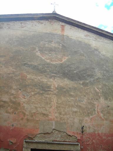 Keywords: Montisi, Cura delle Sante Flora e Lucilla, facciata.jpg it Nella parte superiore della chiesa della Cura delle S S Flora e Lucilla in Montisi provincia di Siena si trovano le tracce del rosone chiuso nell'Ottocento il bel cornicione in pietra scolpito e la croce in ferro battutto Own Pufui Pc Pifpef I 2007-07-04 Cura delle Sante Flora e Lucilla Montisi - Exterior
