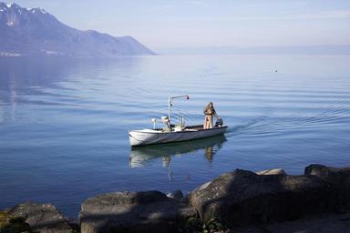 Keywords: montreux swiss switzerland lake boat fisherman travel water