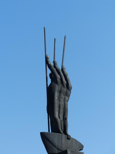 Keywords: monument bronze statue men boot rowing paddle three men in a boat new ulm town hall square sculpture edwin scharff landmark 3 men in a boat