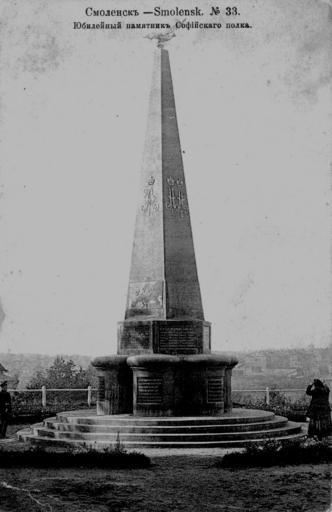 | Keywords: Monument to Sofia Regiment 1.jpg en Monument to Sofia Regiment View from the royal monogram during the Soviet era were destroyed now restored ru Памятник Софийскому полку Вид с ца скими вензелями в годы советской власти были уничтожены сейчас восстанавливаются О игинальная отк ытка е установлены before 1917 года PD-RusEmpire 20th-century postcards Postcards of Smolensk Historical photos of Monument to Sofijsky regiment | ||||