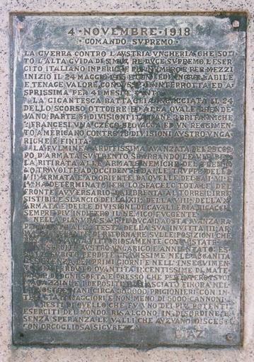 | Keywords: Monumento ai caduti Fara Novarese lapide Diaz.jpg Fara Novarese Piazza della Stazione Monumento ai Caduti Epigrafe con il Bollettino della Vittoria del Generale Diaz Own 2008-09-22 Vincenzo Desiderio 45 33 2 68 N 8 27 29 81 E region IT Bollettino della Vittoria Fara Novarese War memorials in Piedmont Fara Novarese War memorials in the province of Novara Fara Novarese World War I memorials in Italy Fara Novarese 4 November 1918 Plaques in Fara Novarese Plaques referencing 1918 | ||||