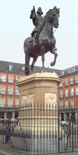 | Keywords: Monumento a Felipe III (Madrid) 01.jpg Monument to Philip III of Spain 1578 “1621 at the Plaza Mayor square of Madrid Inaugurated in 1848 Bronze equestrian statue was started by Giambologna 1529 “1608 and finished in 1616 by Pietro Tacca 1577 “1640 Monumento a Felipe III de España 1578 “1621 en la Plaza Mayor de Madrid Inaugurado en 1848 La estatua ecuestre de bronce fue comenzada por Juan de Bolonia 1529 “1608 y acabada en 1616 por Pietro Tacca 1577 “1640 own 2006-04-17 Luis GarcĂa Zaqarbal Zaqarbal Statue of Philip III of Spain Madrid Files by User Zaqarbal |