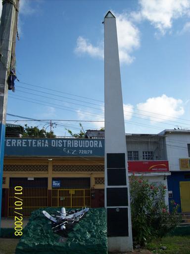 Keywords: Monumento a la campaña sanitaria 1.jpg es Monumento al zancudo muerto El 02 de diciembre de 1945 se inició en este lugar la campaña antipaludica con DDT a escala nacional con participacion del Gobierno de Carabobo y la División de Malariología del Ministerio de Sanidad y Asistencia Social a través de los Doctores Arnoldo Gabaldón y Enrique Tejera own Geliersanta GFDL relicense Morón Venezuela Obelisks in Venezuela Malaria in art |